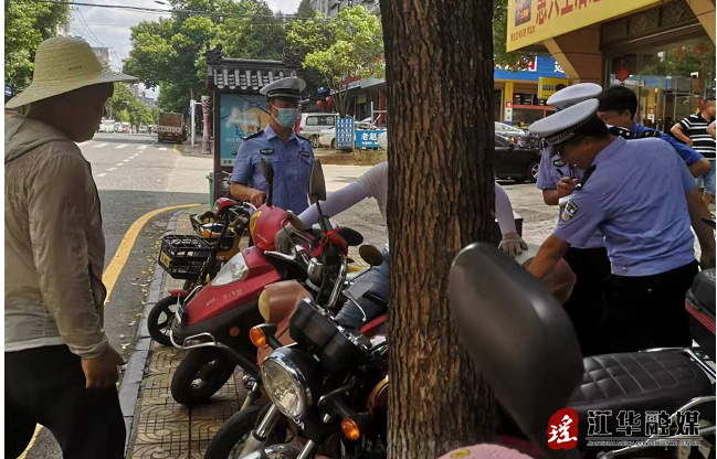 7月12日,江华瑶族自治县公安局交通警察大队在县城沱江镇持续开展交通秩序综合整治工作,重点查处“占用人行道,乱停、乱放”等“一占两乱”交通违法行为,确保城区道路畅通有序。