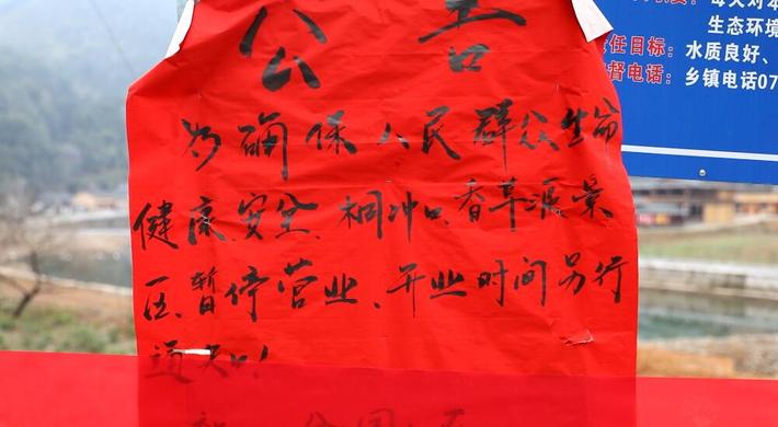 湘江乡桐冲口村在大年初二早上主动将景区关闭,积极配合乡政府在村口做好外来人员和车辆的防控工作,打造全乡外防输入的桥头堡。