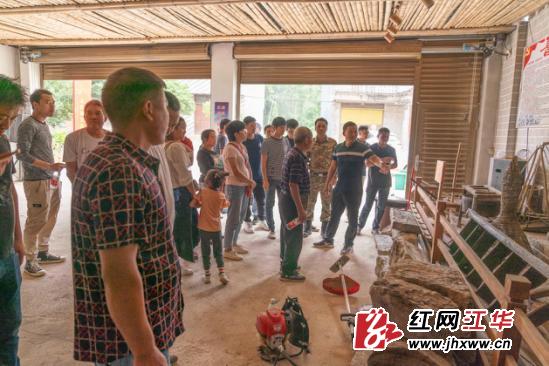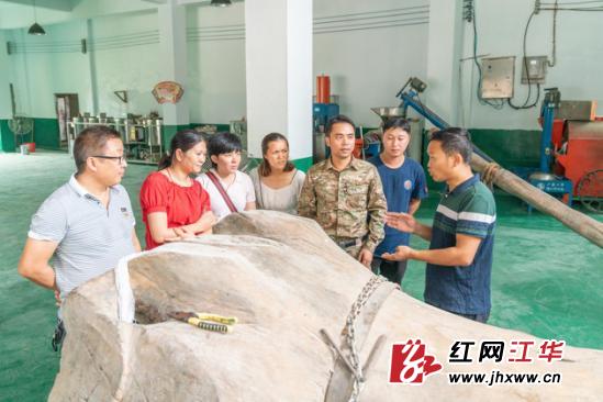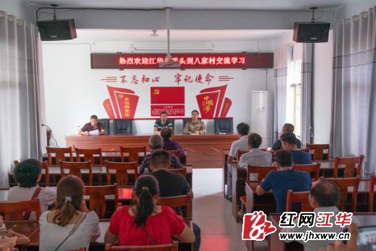 随后又来到了道县八家村,八家村先后荣获全国乡村治理示范村、湖南省卫生村、永州生态村、先进基层党组织等荣誉称号。在八家村支部书记的带领下参观了八家村经济合作社,农耕文化展览馆、千亩油茶基地、千亩橘园、乡村大舞台、村活动中心、五保之家、红军亭、红军渡口。最后,来到了八家村委会活动中心,该村支部书记介绍说“近年来,八家村坚持党建引领乡村治理。安排专项资金推进村级“党建元素”提升工程,通过党群中心修缮、布展和党建节点建设等方式,在村内主要街道、场所建设党建节点,全面丰富党建元素,规范提升村级党群中心,进一步优化党员活动、办公室议事、公共服务、文体娱乐等四大功能,突出“党群”主体和“议事、服务”内涵。全力打造产业兴旺。通过盘活集体资源,壮大集体经济。运用“党支部+合作社+农户”机制,村党支部发起成立油茶种植农民专业合作社、千吨大米加工合作社党员带头,引导广大农户以土地入股的形式加入合作社,通过土地入股、土地流转及劳动服务等形式增加村民收入。