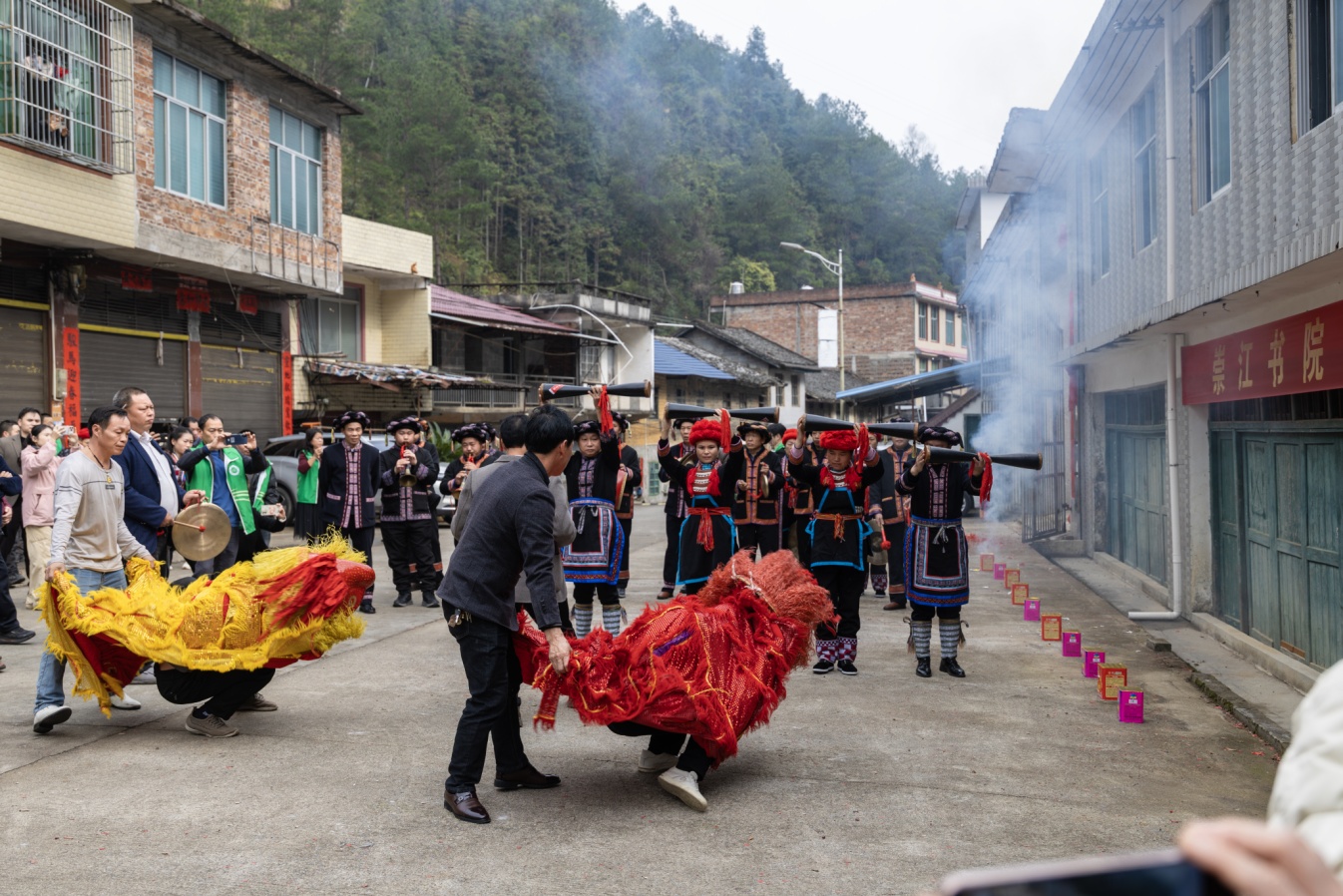 (崇江耕读文化节,瑶族长鼓龙狮非遗项目巡演)